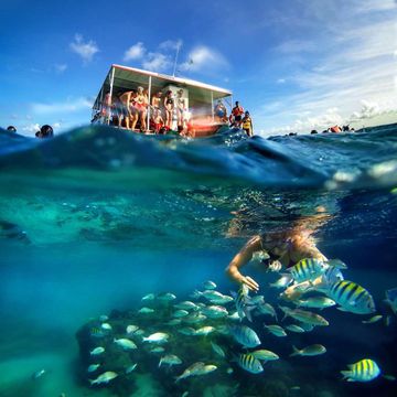 Mergulhar com peixinhos coloridos