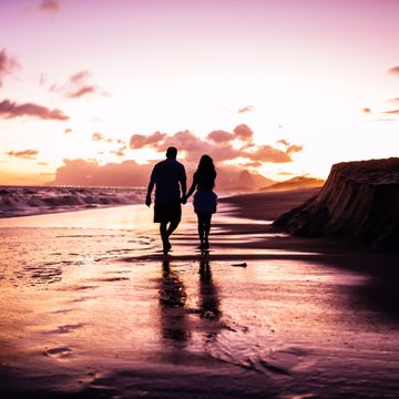Caminhar na beira da praia de mãos dadas