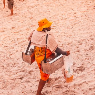 Comprar petiscos de vendedores ambulantes na areia