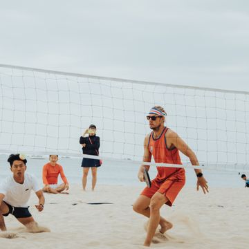 Testar suas habilidades no futevôlei à beira mar
